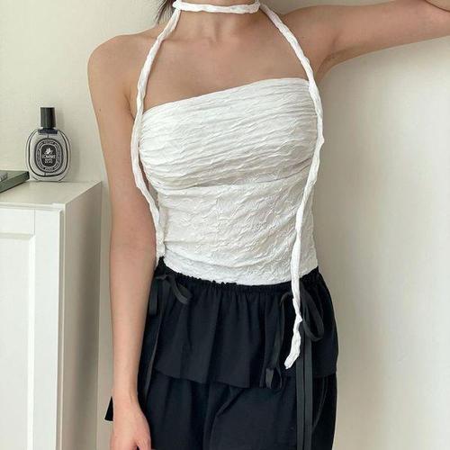 [신상오픈런]여성 여름 크롭탑 링클 셔링 스판 티셔츠
