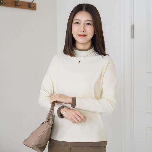 엄마옷 마담4060 투배색폴라기모티셔츠-QTE2601001-