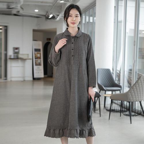엄마옷 레이스카라 긴팔 원피스 602BNM092 중년여성/50대/60대/마담/빅사이즈/할머니옷