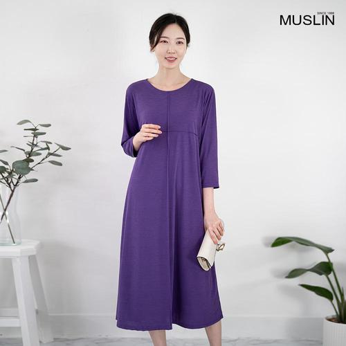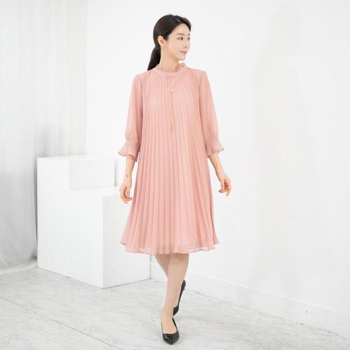 엄마옷 라운드 플리츠 무지 원피스 602BNM091 중년여성/50대/60대/마담/빅사이즈/할머니옷