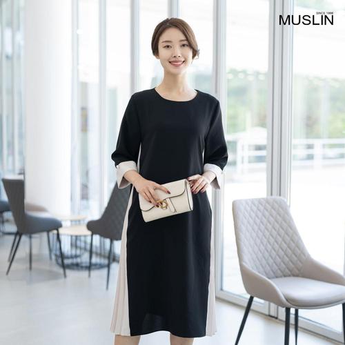 엄마옷 진주 배색플리츠 원피스 613BNM176 중년여성/50대/60대/마담/빅사이즈/할머니옷
