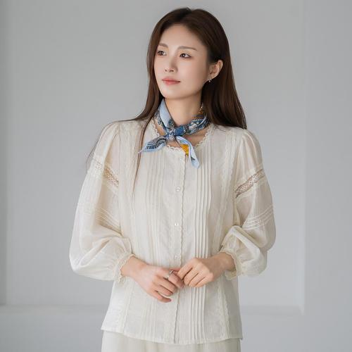 엄마옷 마담4060 [내추럴포엠]데님핀턱레이스블라우스 -QBL2603017-