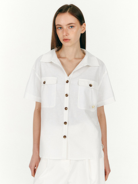 [마리끌레르] 린넨 레귤러핏 반팔 셔츠(MAFBSH02MWH)