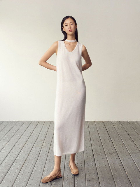 [마레디마리] Cashmere 100% String Point Dress Ivory