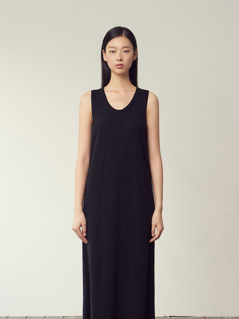 [마레디마리] Cashmere 100% String Point Long Dress Black