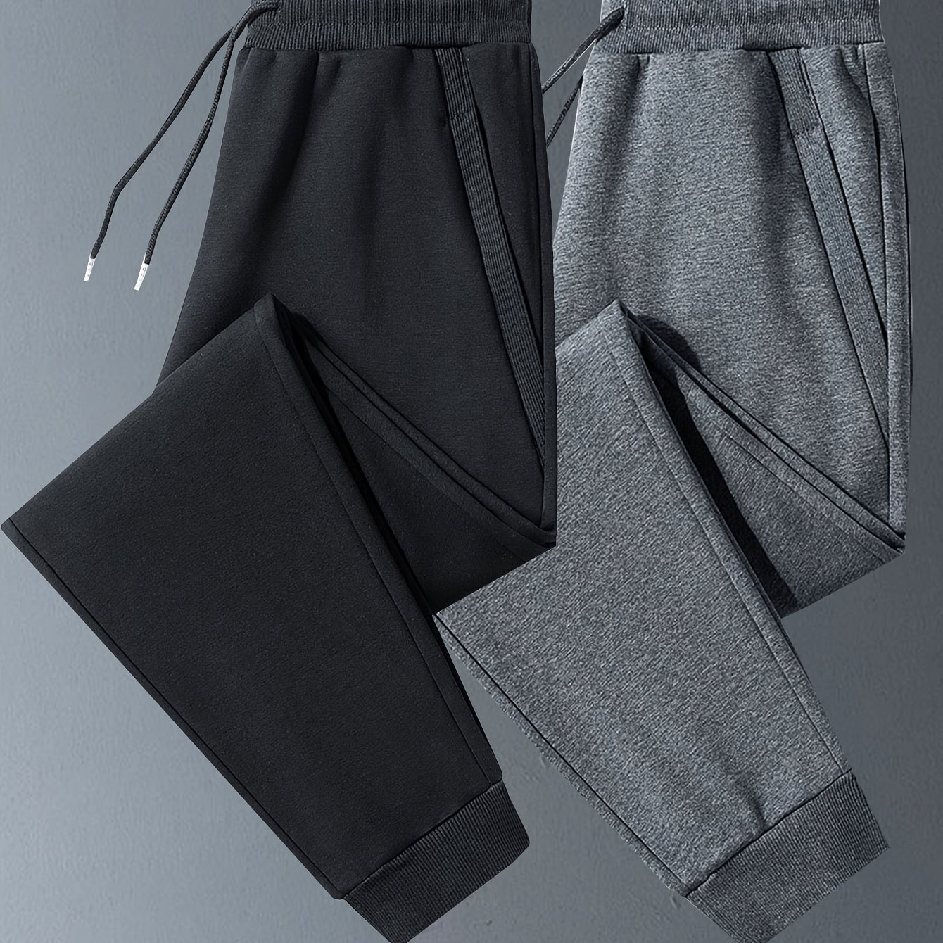 TEMU 남성용 3색 스포츠 조거 팬츠 (지퍼 포켓 및 탄성 드로스트링 허리) - 올 시즌에 적합한 풀 지퍼 피트니스 바지, 레그 캐주얼 롱 팬츠 (커프 디자인), 운동 및 일상복에 적합 (블랙, 그레이 색상)