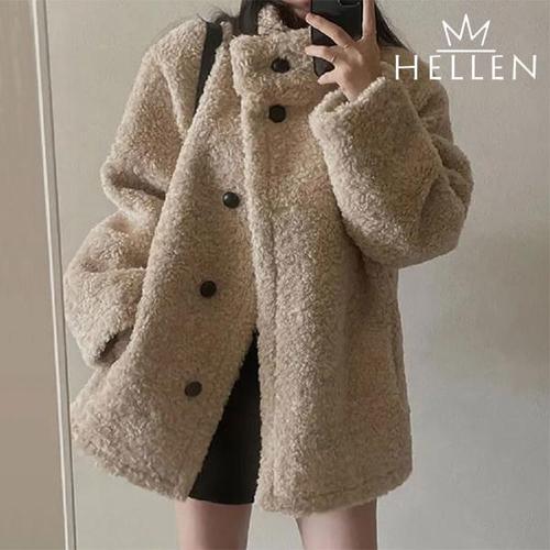 [헬렌]헬렌 시어링 하프 퍼 코트 하이넥 플리스 겨울 자켓