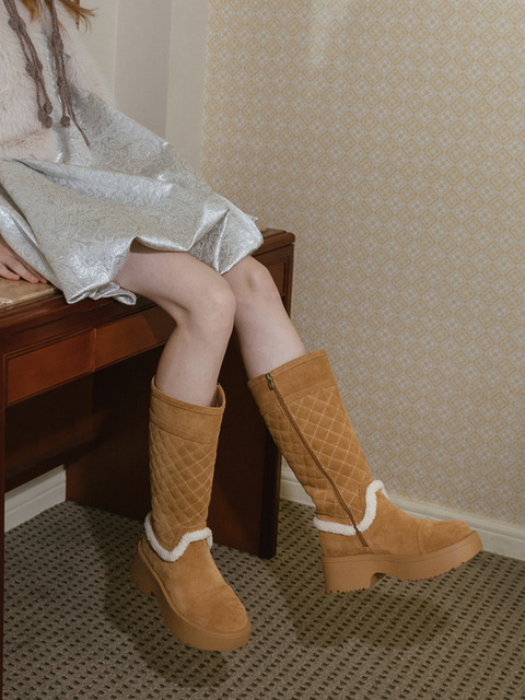 [마크모크] Amonds 아몬즈 천연소가죽 다이아몬드 퀼티드 롱부츠