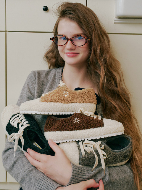 [마크모크] Goorm 구름 뽀글털 꽃포인트 스니커즈_4Color