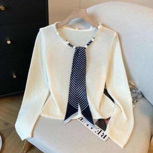 [다잇템_패션]여성 타이넥 마후라 스웨터 줄무늬 여리핏