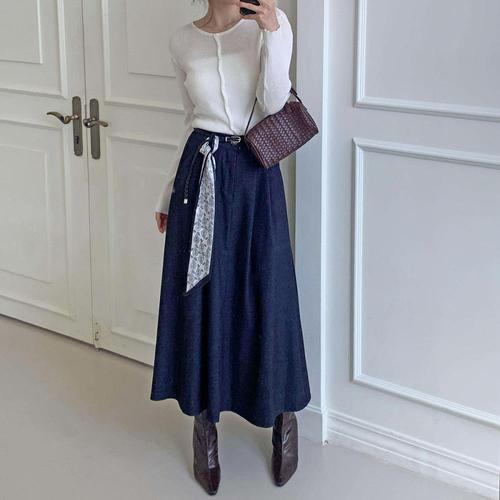 [다잇템]여성 에이라인 베이직 혁대 롱 마후라 치마