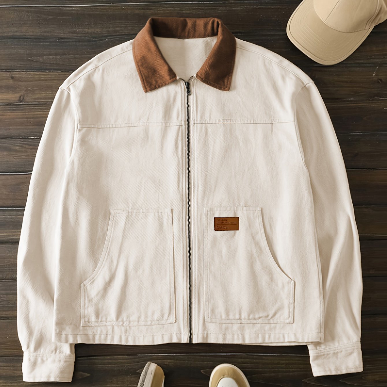 TEMU 추수감사절 남성 선물, 컬러 블록 스플라이스 풀지퍼 포켓 자켓, 영문 가죽 패치 디자인, 데일리 캐주얼 패션, 심플 아웃팅 출퇴근 스트리트 트렌드, 봄 가을 남성 자켓