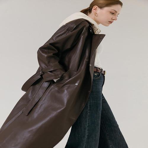 [막스까르띠지오]더블버튼 맥시 레더 트렌치 코트