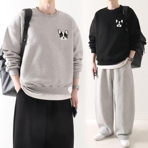 [지지블랙][1+1] 어깨가 넓어보이는 푸들 기모 자수 오버핏 맨투맨 티셔츠 ZZBMT052