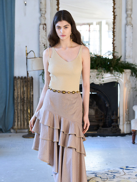 [까이에] [까이에]언밸런스 티어드 머메이드 스커트_베이지