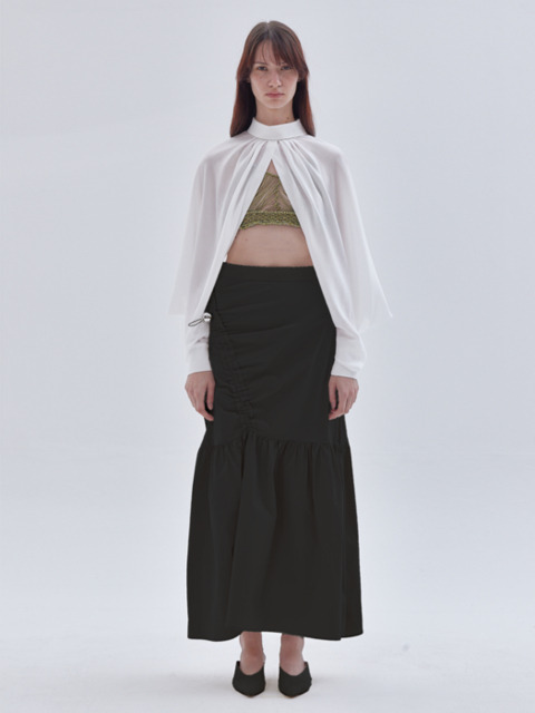 [라이] 언벨런스 셔링 머메이드 스커트 블랙