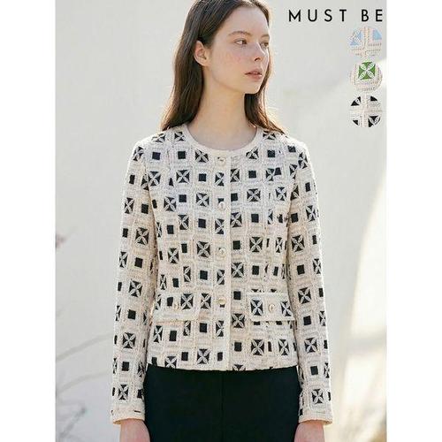 [머스트비]여성 배색 크로쉐 자켓