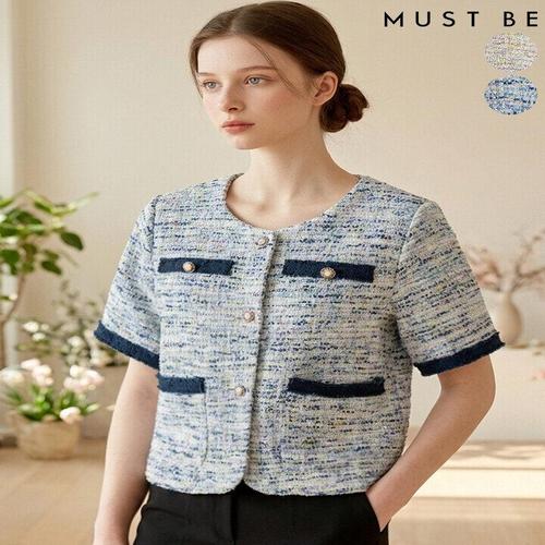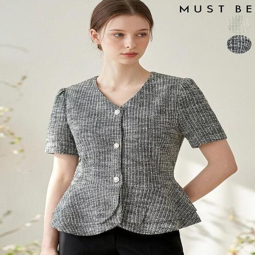 [머스트비]여성 페플럼 블라우스형 반소매 트위드자켓