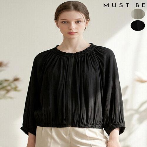 [머스트비]여성 셔링 넥라인 집업 자켓