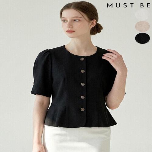 [머스트비]여성 퍼프 반소매 페플럼 린넨 자켓