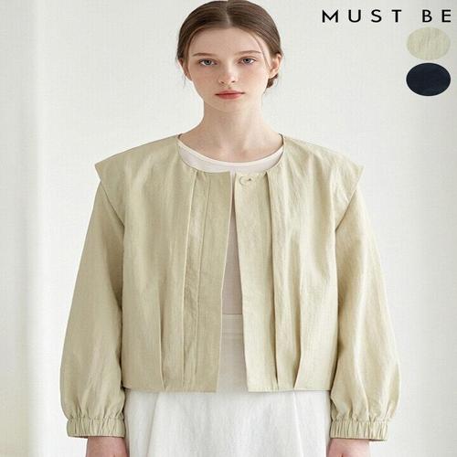 [머스트비]여성 투핀턱 노카라 라운드넥 자켓