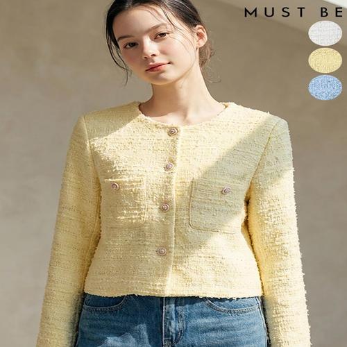[머스트비]여성 은장단추 후크 트위드자켓