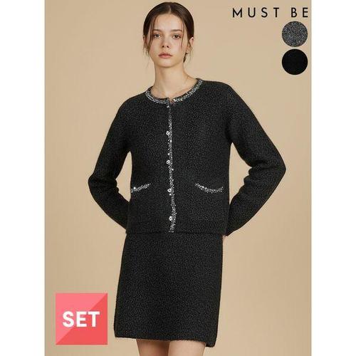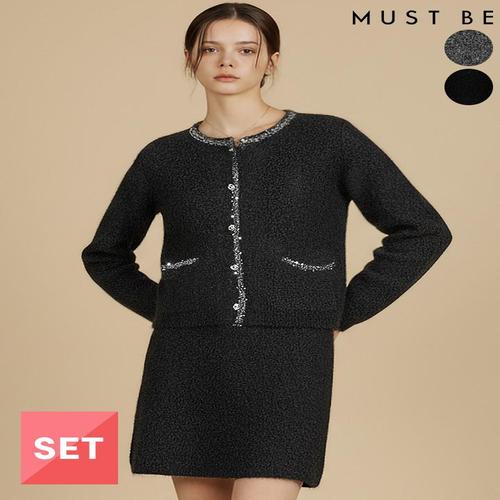 [머스트비]여성 스팽글 라인 가디건 스커트 셋업