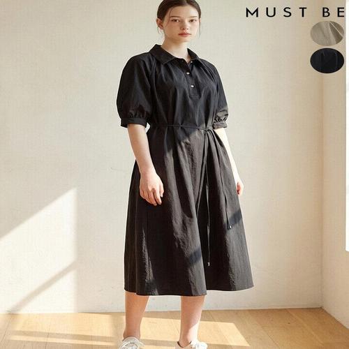 [머스트비]여성 퍼프 반소매 허리 스트랩 롱원피스