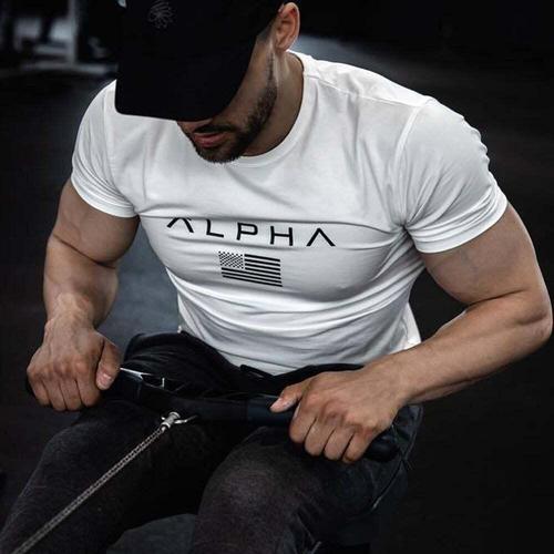AMBEX 남자 머슬핏 헬스복 짐웨어 무지 면 반팔 티셔츠
