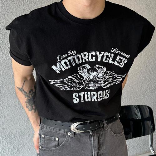 [아레스]바이커 머슬핏 크랙 반팔 티셔츠 (3color)