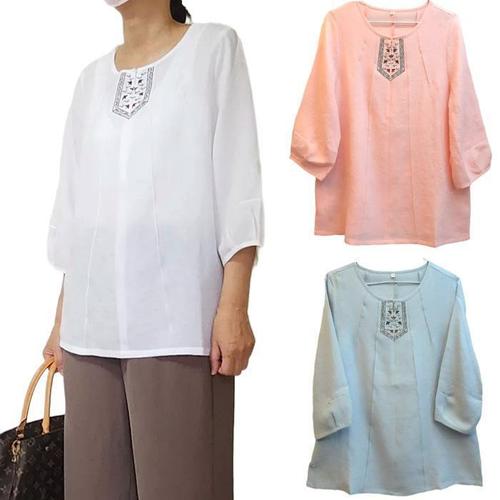 메밀꽃 피는날 여성 아사면 자수 여름상의