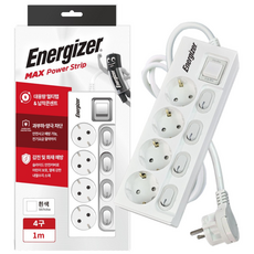 에너자이저 개별스위치 멀티탭 고용량 4구 납작플러그 과부하차단 16A, 화이트(개별스위치 4구), 1개, 1m