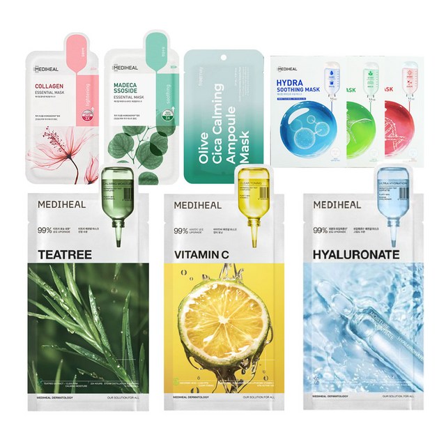 총18장 9+9 메디힐 마스크팩 티트리 콜라겐 아쿠아 수분 비타 미백 NMF 인투스킨