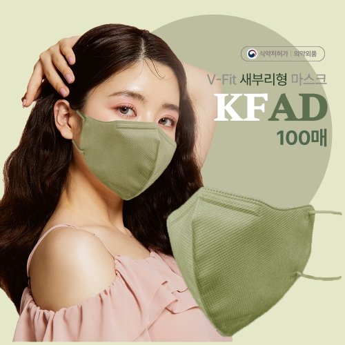 [카키 100매]국내산 덴탈 마스크 KFAD 새부리형 여름 일회용 마스크