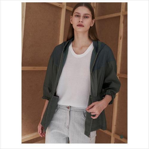 [크로커다일레이디]크로커다일레이디 (CLEMJP211) 나일론 코튼 메쉬 믹스 후드 집업 점퍼_GN