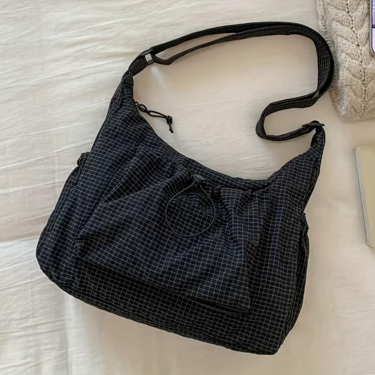 TEMU 여성용 접이식 핸드백 - 조절 가능한 크로스바디 스트랩 & 주름 다중 포켓 디자인 - 체크무늬 스쿨 백팩, 대학, 여행, 일상 사용에 적합, 지퍼 잠금, 내구성 있는 가방
