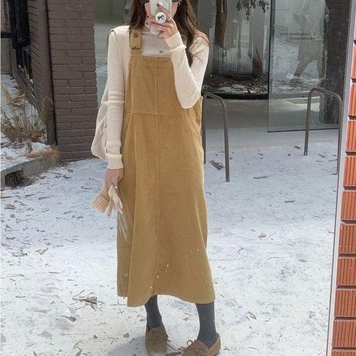 [에이치플러스몰]골덴소재 멜빵 시즌미니드레스