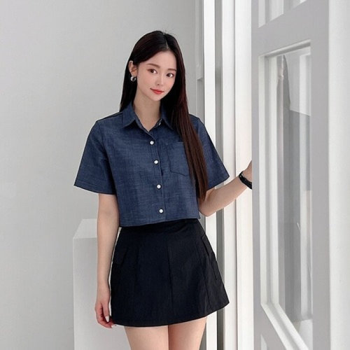 플러리싱 / 베이직 코튼 데님 반팔 크롭 남방 플러리싱