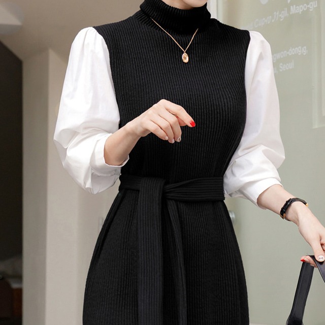비비디아 여성용 신상 롱원피스 스퀘어넥 벨트 하객룩 오피스룩 봄가을 단정한 정장 원피스 5538