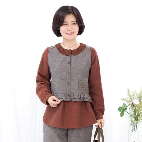 [모슬린]엄마옷 면 모카 생활한복 롱조끼 613FGH236 마담/중년여성/빅사이즈/50대/60대