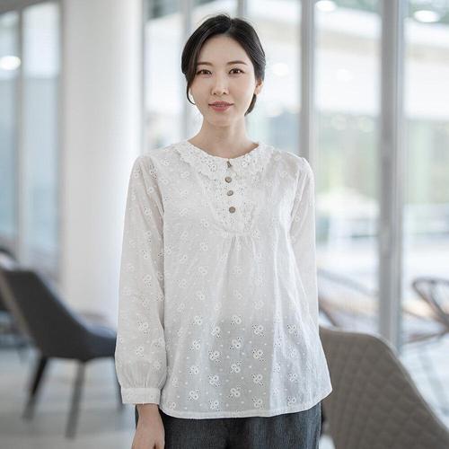 [모슬린]엄마옷 면 레이스 생활한복 블라우스 613FGH235 마담/중년여성/빅사이즈/50대/60대