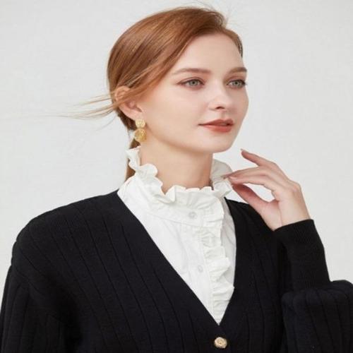 [옷자락]여자 아이보리 코튼 레이스 프릴 하이넥 블라우스