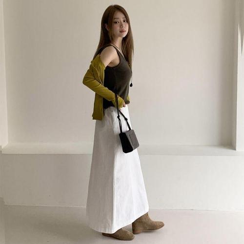 [옷자락] 여자 린루가 와이드 밴딩 슬림 코튼 롱스커트