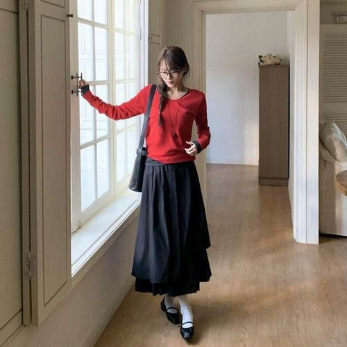 [신상오픈런]여성용 사계절 코튼 레이어드 롱스커트 봄가을 데일리 스타일