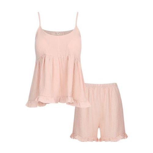 [샵앤]여성 끈조절 가능 가슴패드 투피스 면 잠옷 홈웨어 상하세트 CHA-WSET-20726-핑크