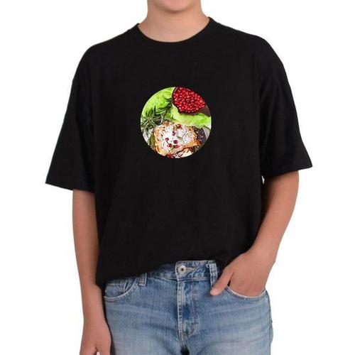 [에이치플러스몰]길단 반팔 USA핏 음식 데코 브레드 빵 과일 브런치 장식 모닝그림 다양한색상 전사이즈