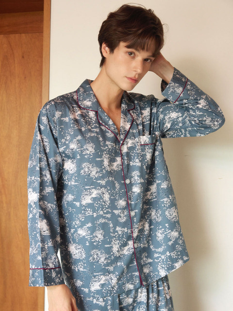 [루나루즈 스튜디오] 남성 쟈르뎅 모달코튼 긴소매 카라 투피스 잠옷