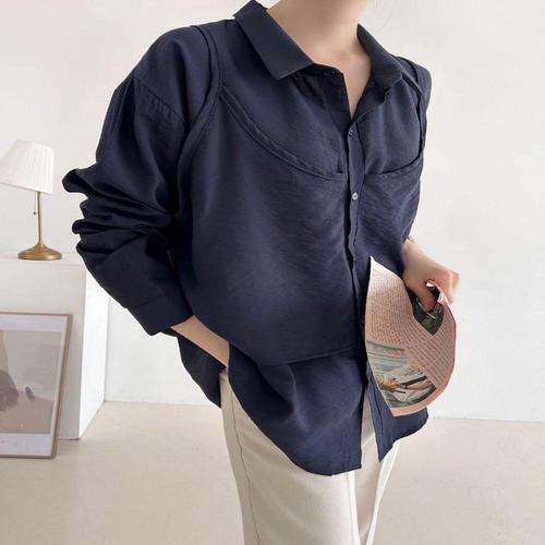 [오너클랜]인기상품 여성 2컬러 레이어드 포인트 모던룩 셔츠 남방 [WFK5SJM_260405]