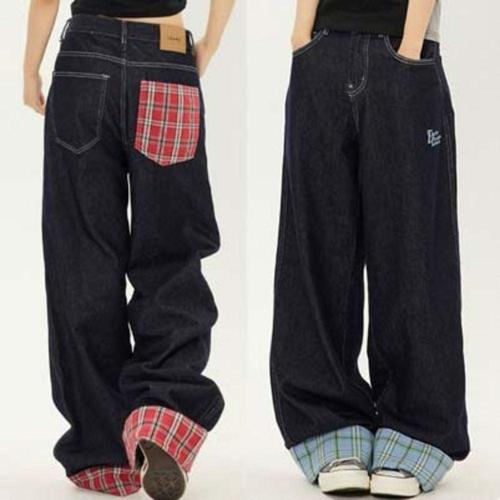 모던 빈티지 여성 체크 포인트 와이드 데님 팬츠 WFIO716
