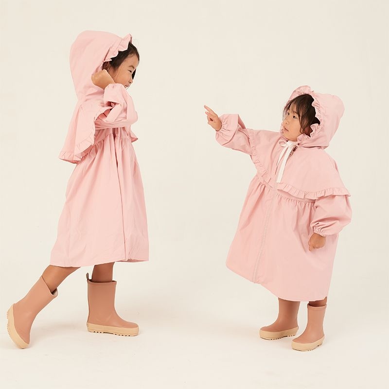 베이지 핑크 유아용 어린이 우비 레인코트 프릴형